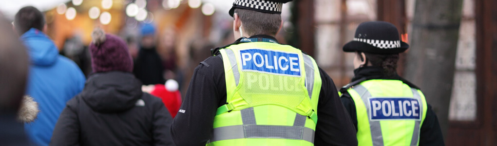 - Police officers recording an arrest on body cams, and live streaming for assessment and support